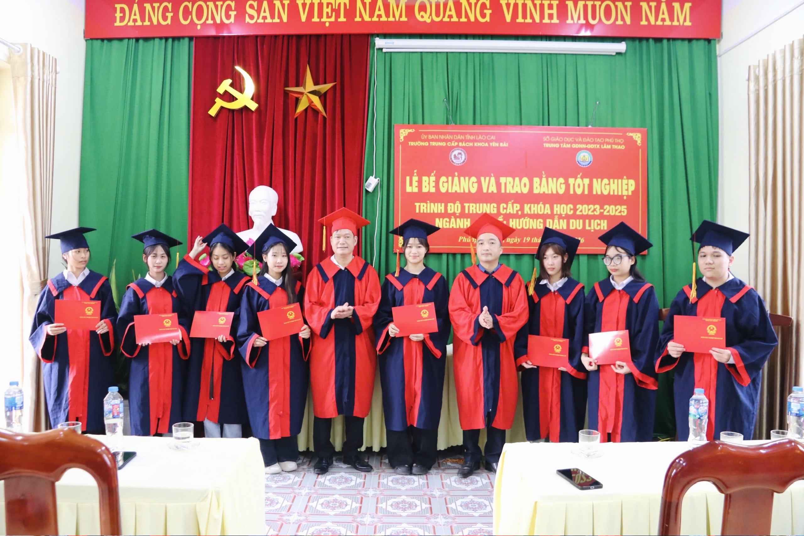 Vừa qua, vào các ngày 19 và 21 tháng 3 năm 2026, Trường Trung cấp Bách khoa Yên Bái đã phối hợp cùng Trung tâm GDNN – GDTX Lâm Thao và Trung tâm GDNN – GDTX Phù Ninh (tỉnh Phú Thọ) long trọng tổ chức Lễ bế giảng và trao bằng tốt nghiệp trình độ Trung cấp cho các em học sinh khối ngành Hướng dẫn du lịch và Kỹ thuật pha chế và phục vụ đồ uống.