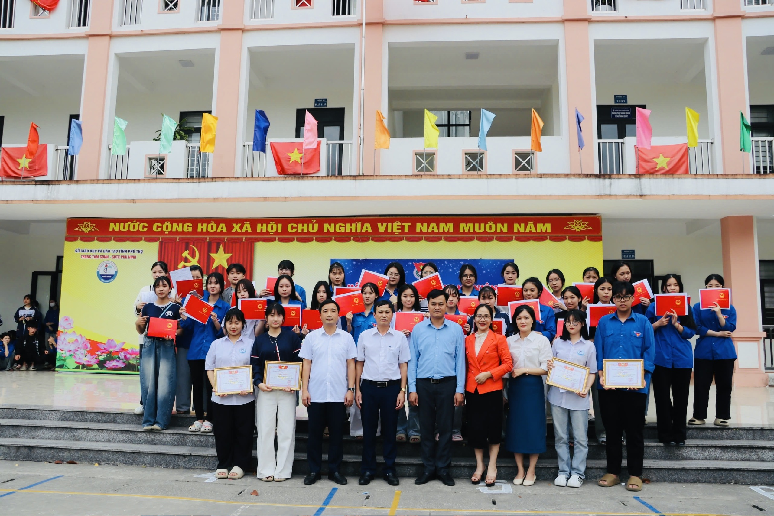 Lãnh đạo nhà trường và Trung tâm trao Giấy khen cho các học sinh có thành tích xuất sắc